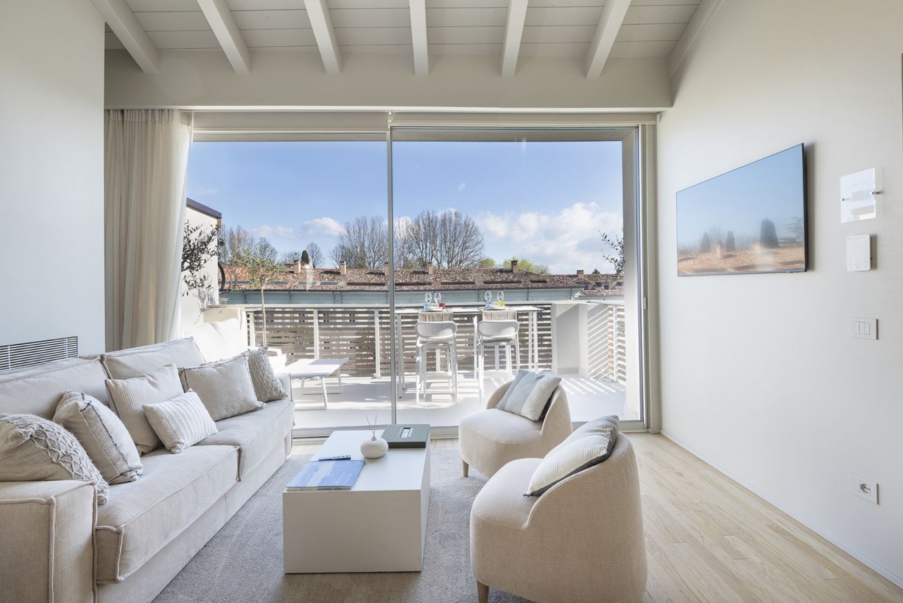 Appartamento nel centro storico di Peschiera del Garda al 3 piano di una palazzina ristrutturata 2024, con ascensore; 2 camera da letto matrimoniale, 2 bagni con doccia, living con divano letto matrimoniale, zona pranzo- cottura. può ospitare fino a 4 persone.
